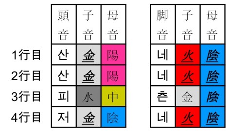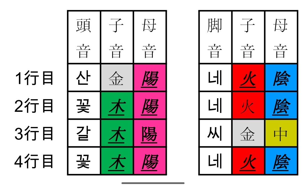 詩子アナ:「산에는」の「산」は「ㅅ(シオット)」で始まっていますから、五行では「金」です。