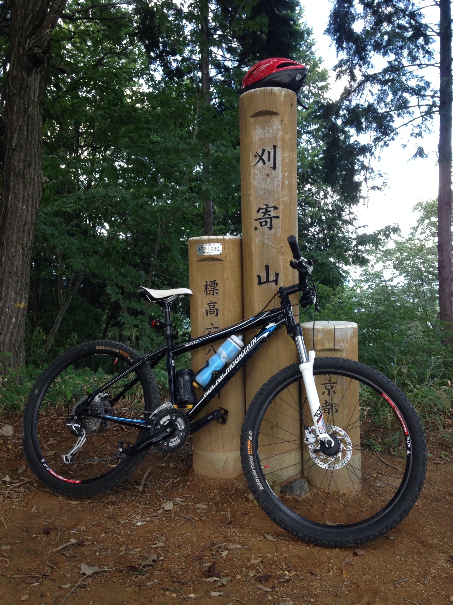 写真は東京西端にある刈寄(かりよせ)山の山頂、眺望もほとんどない。というより、自転車を押し上げて辿りついたときは疲れていて、景色を楽しむ余裕がなかった。標高687m