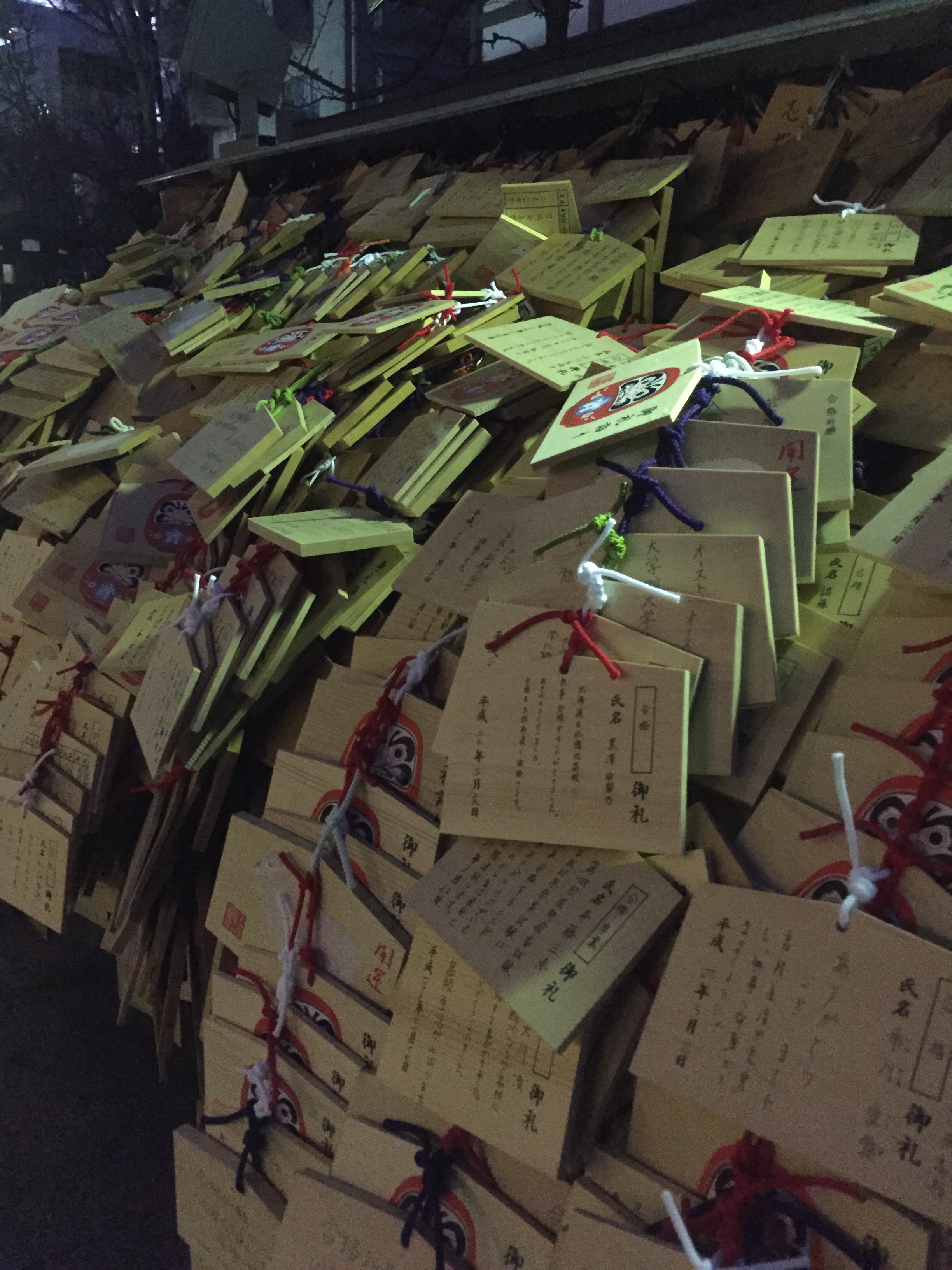 湯島天神の境内に幾重にも結び掛けられた絵馬・エマ・絵馬、開運・合格祈願から合格お礼まで、人びとのさまざまな欲望のカタチが堆積している。賽銭箱と同じ現世利益を求める人びとの群れが押し寄せてくるではないか。