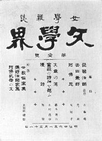 1893(明治26)年1月-98年1月、全58冊。発行所は4号まで女學雜誌社、以後文學界雜誌社。おもな同人は星野天知、平田禿木、島崎藤村、北村透谷、戸川秋骨、馬場孤蝶、上田敏など。キリスト教的改良主義にたつ『女學雜誌』の若い寄稿家を中心に発刊され、やがて女學雜誌社から独立するとともに啓蒙主義的立場から脱し、主我的で反俗的な浪漫主義の傾向を強めていった。後期浪漫主義を代表する『明星』に対して前期浪漫主義の拠点となった。初期は北村透谷の形而上的な評論、中期は客員格であった樋口一葉の小説や上田敏、平田禿木らの芸術至上主義的評論、後期は島崎藤村の叙情詩によって代表される。