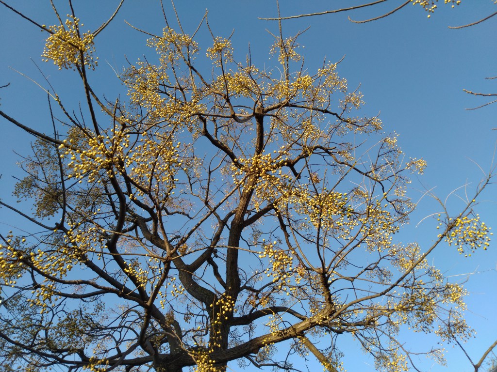 寺の裏手にある公園にセンダンの樹があり実がたわわになっていた。調べたところ、日本にセンダンの樹はなく、平家物語巻十一にある「獄門の左の樗の木にぞ懸けられける」の「樗[おうち]の木」が栴檀とされるようになったという。実をついばんでいた鳥はムクドリらしい。