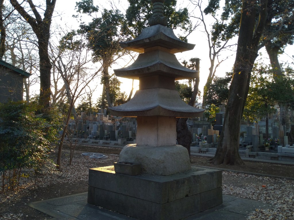 九品仏にある淨眞寺(浄土宗)に行った。何回か訪ねている寺だ。九品仏の由来となった阿弥陀如来像九体を三体ずつ安置する三仏堂のあいだ、少し奥まったところに石塔が建っている。前からそこにあることは知っていたが、冬の西日のせいだろうか、石塔が迫ってくるように感じた。幕末に造られた日本様式の阿育王塔だという。阿育王は古代インド(紀元前3世紀)に実在した人物である。