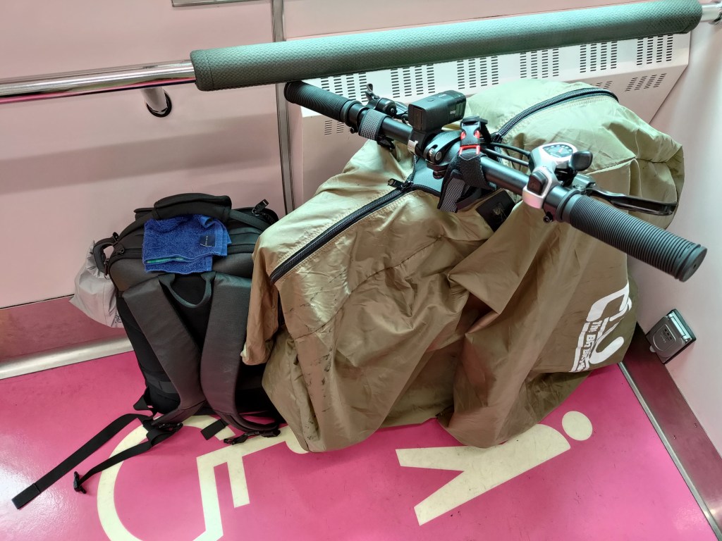 6月中旬にクルマを売却し、16インチの折りたたみ自転車を購入した。台湾製でやや重いが気に入っている。7月から通勤の一部区間を自転車で走り(約30分)、他の区間は輪行袋(bike bag)に詰め電車で通勤(約15分)している。「輪行通勤」と名づけたい。ゆっくり走っても汗だくになる。電車のなかで涼み、事務所に着くと着替える。爽快なことこの上ない。写真はバッグ収納方法と車内ほかでの配置工夫の記録です。