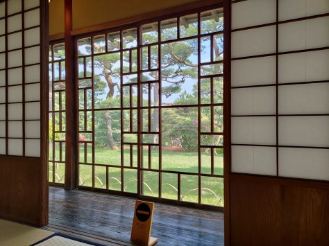 1年ぶりに大磯を訪ねた。前回と同じコースを歩いたが、興味を引くものが違った。昨年11月に公開された旧大隈重信別邸と旧古河別邸(陸奥宗光が晩年を過ごし、その後同夫人が暮らした)の内部を見て彼らの暮らしぶりを想像するのは楽しい。今回は旧吉田邸の竹林、旧古河別邸(1930年改築)の格子戸のようなガラス戸、障子の石垣張りなどに引かれた。