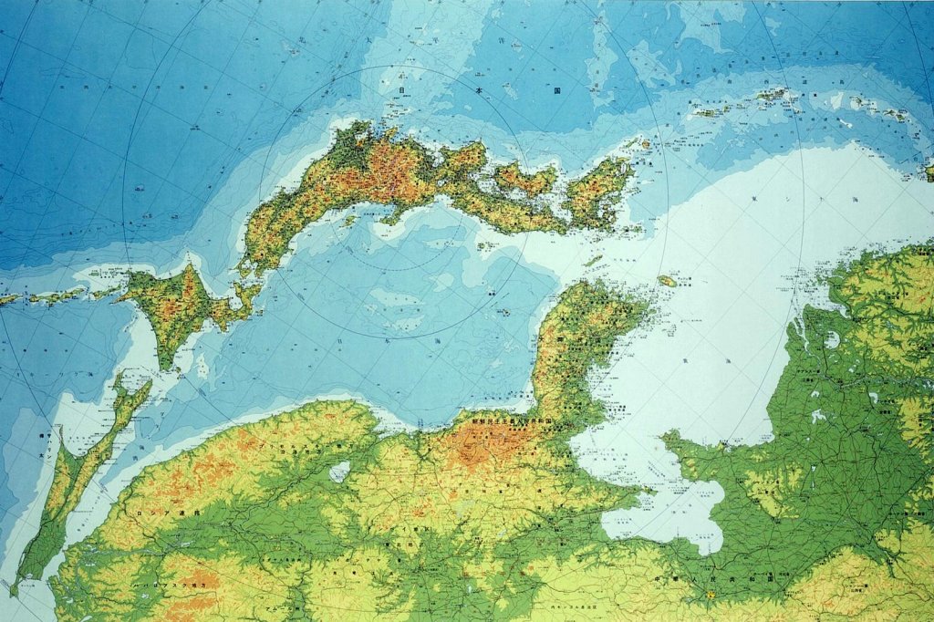 위 지도는 도야마현이 제작한 ‘환일본해 제국도'(1995년 초판)의 역지도를 게재한 것이다. 이 지도를 처음 본 것은『“일본”이란 무엇인가 「日本」とは何か』일본 역사 00(講談社 2000년)의 표지 사진이었다. 그 때의 감동을 잊을 수 없다. 이전에 익숙했던 지도와 비교해 한반도 부분이 훨씬 크게 보였다.